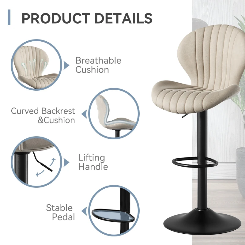 Ideal para barras de cocina, islas, comedores informales o zonas lounge, aportando un toque moderno y elegante sin renunciar al confort.